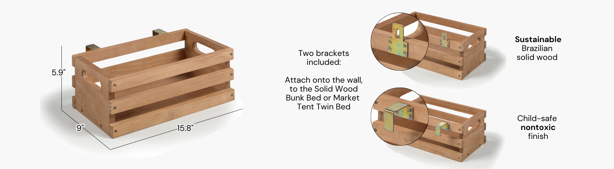 Attach to our Bunk Bed, Market Tent Bed or onto the wall for decor and functionality.