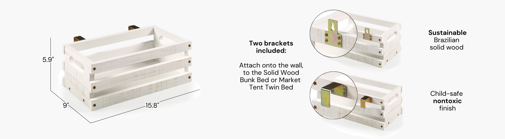 Attach to our Bunk Bed, Market Tent Bed or onto the wall for decor and functionality.