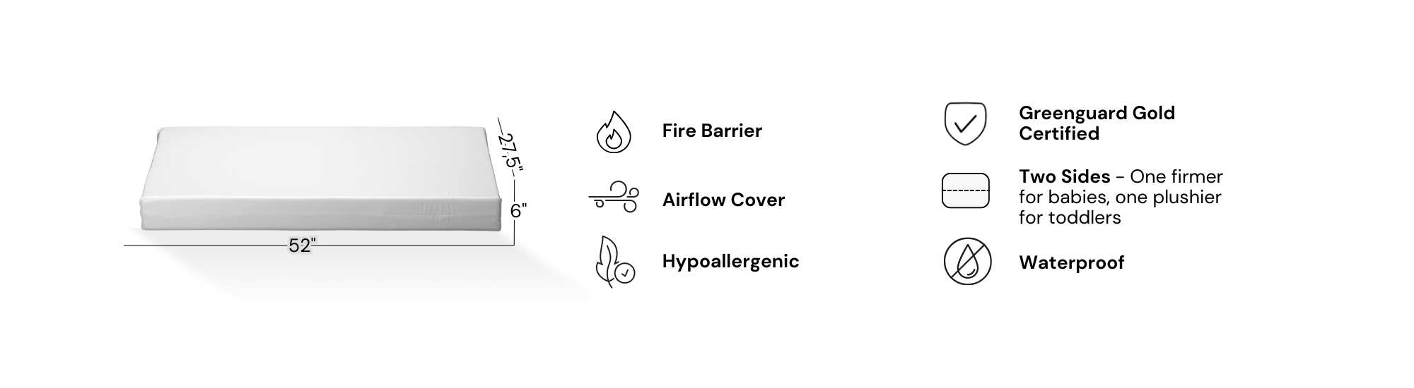 Featuring CertiPUR-US® certified foam infused with plant oils and wrapped in a woven fire barrier with no spray-on FR chemicals, our crib mattresses take sleep seriously.