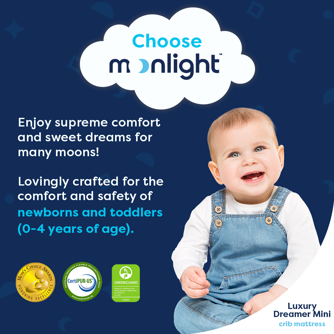 Moonlight products are made lovingly in the United States using only premium materials and innovative manufacturing processes. All Moonlight crib mattresses offer a Lifetime Product Warranty.
