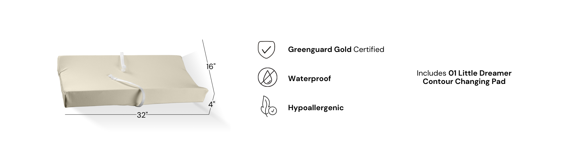 Dimensions: 100% organic cotton contour pad cover. Fits two-sided contour pads 16"/17" wide, 32"/34" long. *Pad not included.