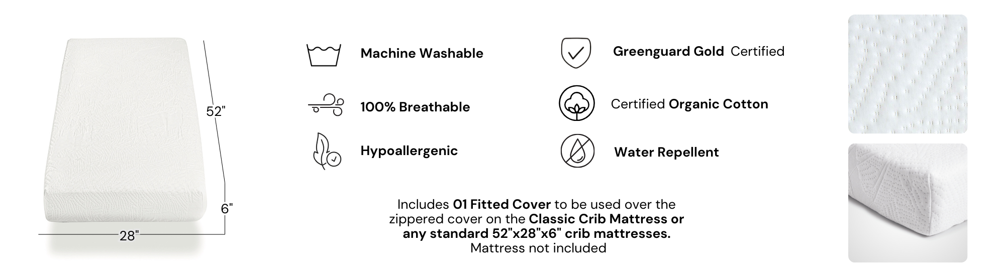 Protective Fitted Cover for the Clasic Crib Mattress or standard 52"x28"x6" crib mattresses