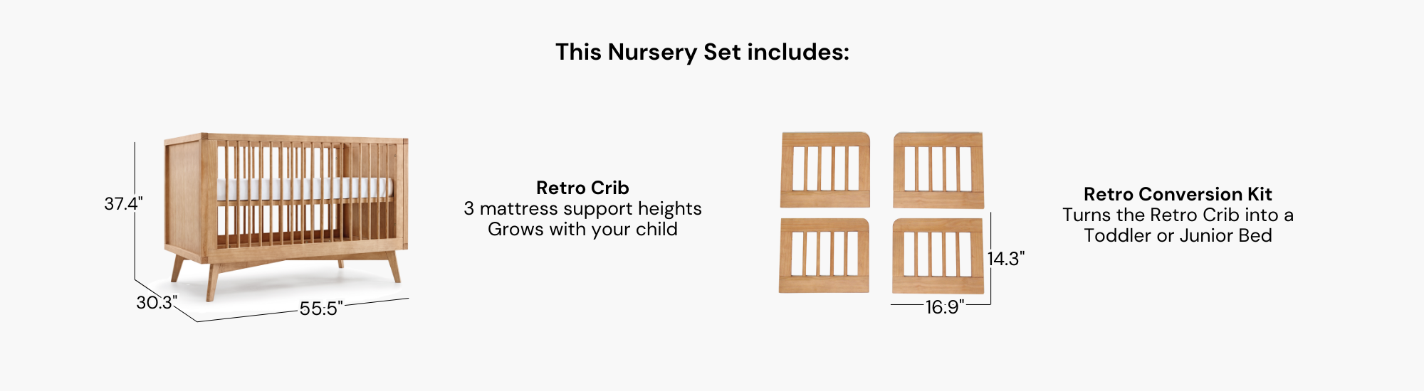 Jen Lomond We got the retro crib in hazelnut. The color is a perfect fit for the mix of woods in our house. Not too light and not too dark. It’s well made and my husband said it was quick and easy to assemble. Love it!