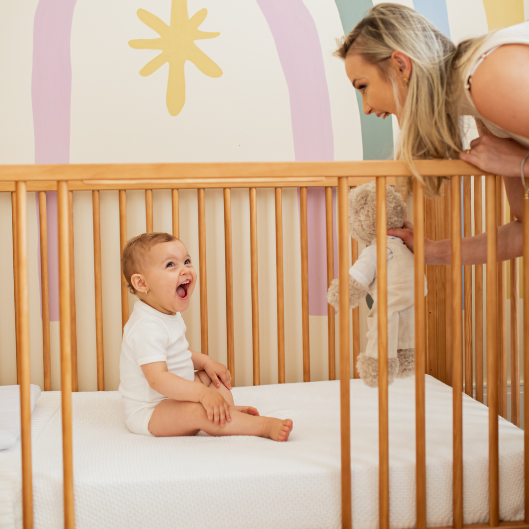 - Mini Crib: Perfect for newborns (0-6 months, depending on child's development) in smaller spaces. Mini crib mattress included!
