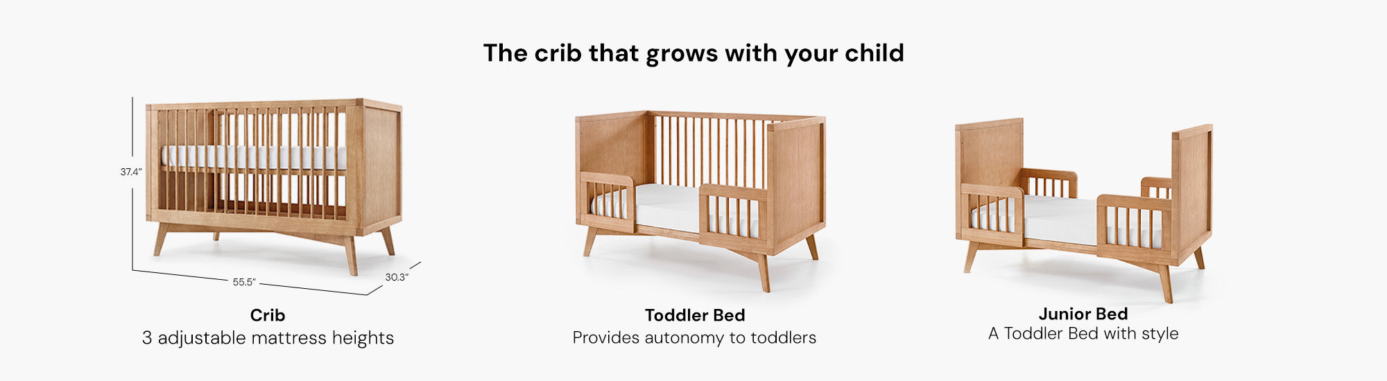 Our convertible crib is designed for long-term use, adapting seamlessly as your child grows: